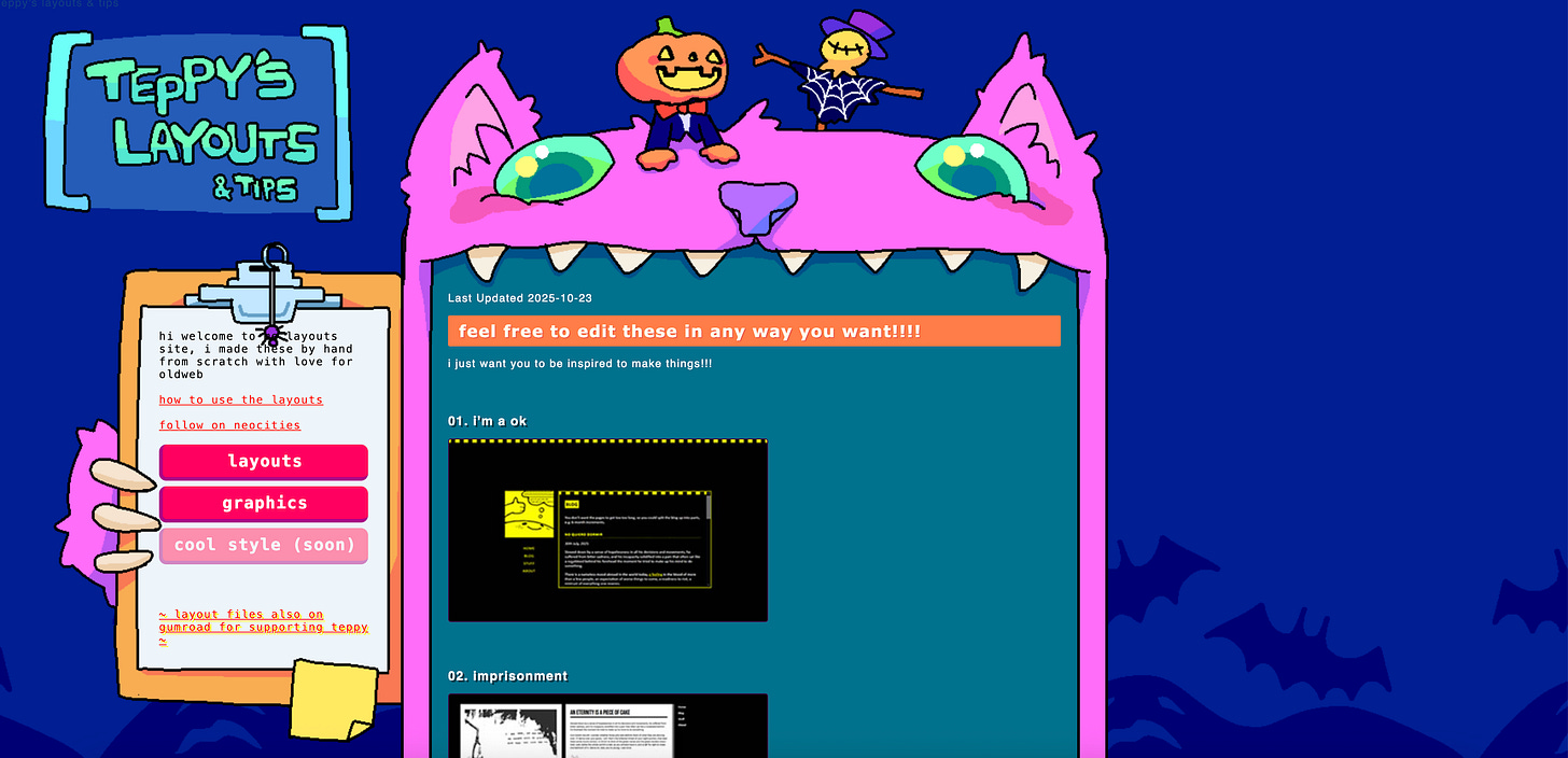 neocities → The Wild West of the modern web. Handmade personal sites, clashing backgrounds, autoplay music, half-finished projects. It’s chaotic, charming, and a reminder that the internet doesn’t have to look like a Silicon Valley pitch deck.