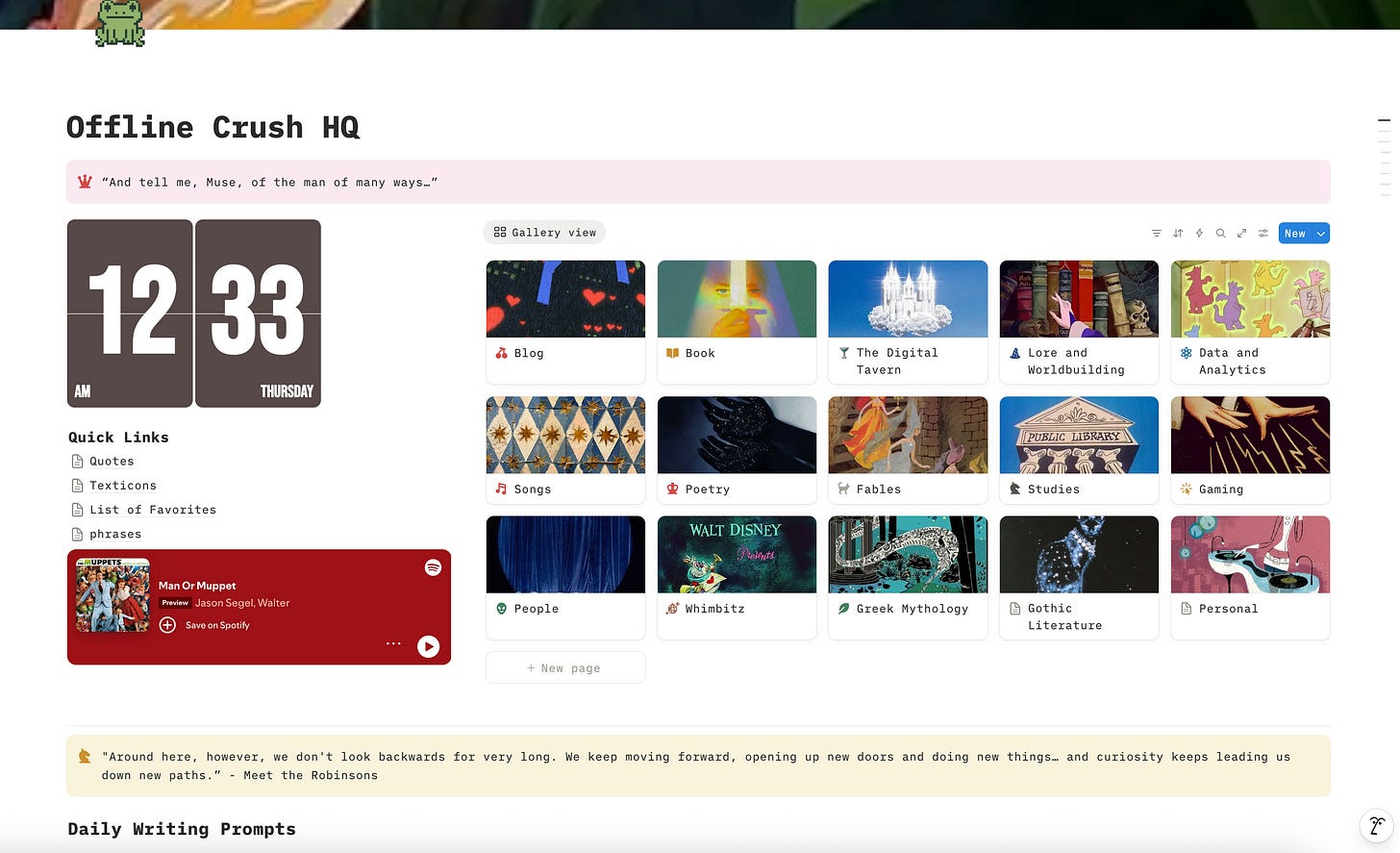 Notion / Are.na → Even a personal wiki or a visual scrapbook counts. If it’s a place where your taste lives, it’s a corner.